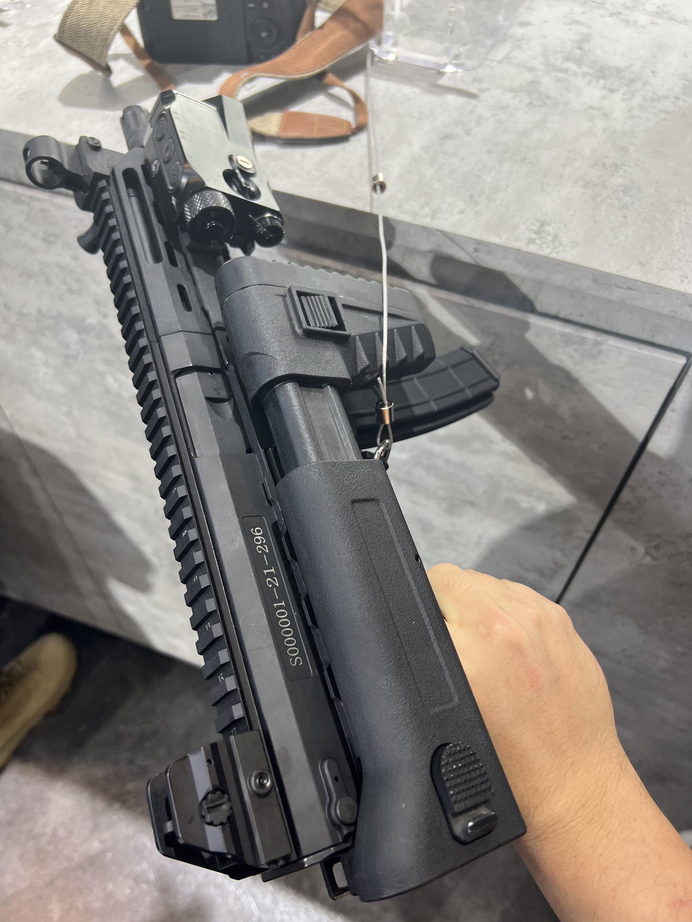 建设公司在2019年上半年的一次外贸产品的展示中,出现了一种右侧也有快慢机柄的CS/LS7,另外照片中还出现了一种类似MP5K的缩短型