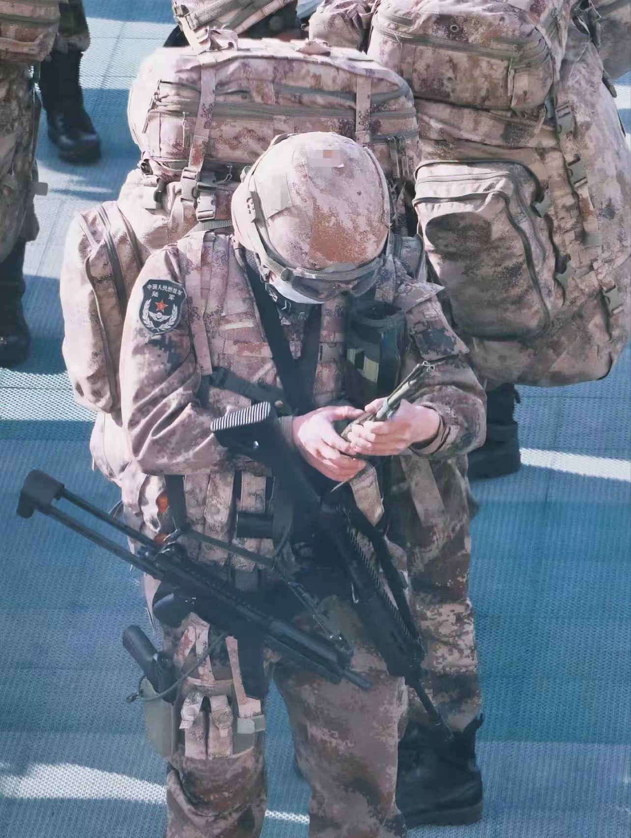 70周年阅兵后曝光的一支QCQ171,可以看到护木上没有皮卡汀尼导轨
