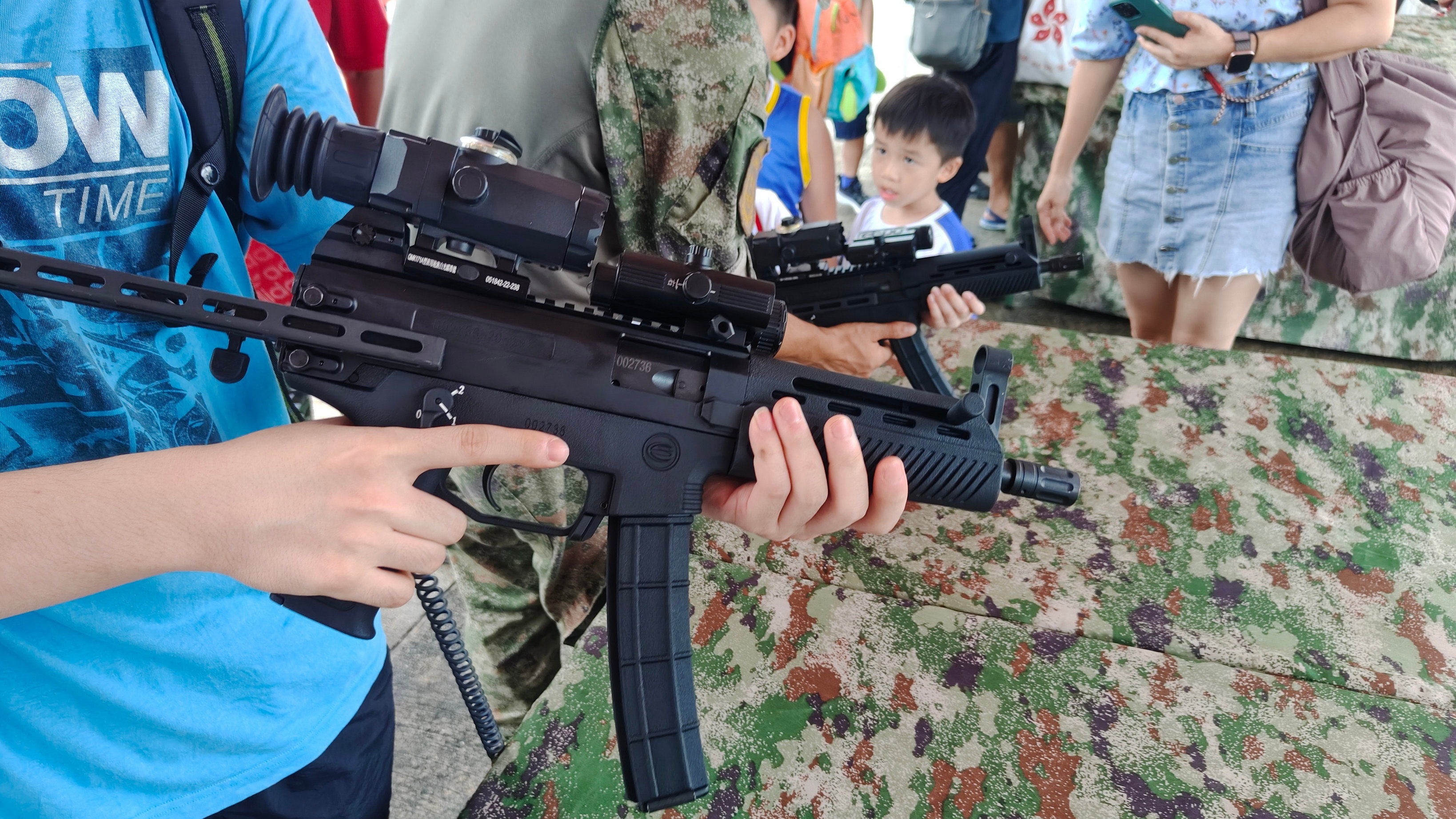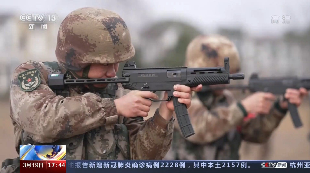 2019年阅兵前几天晚上的预演,有人偷拍到的QCQ171冲锋枪,这算是正式阅兵前最早暴露的QCQ171照片
