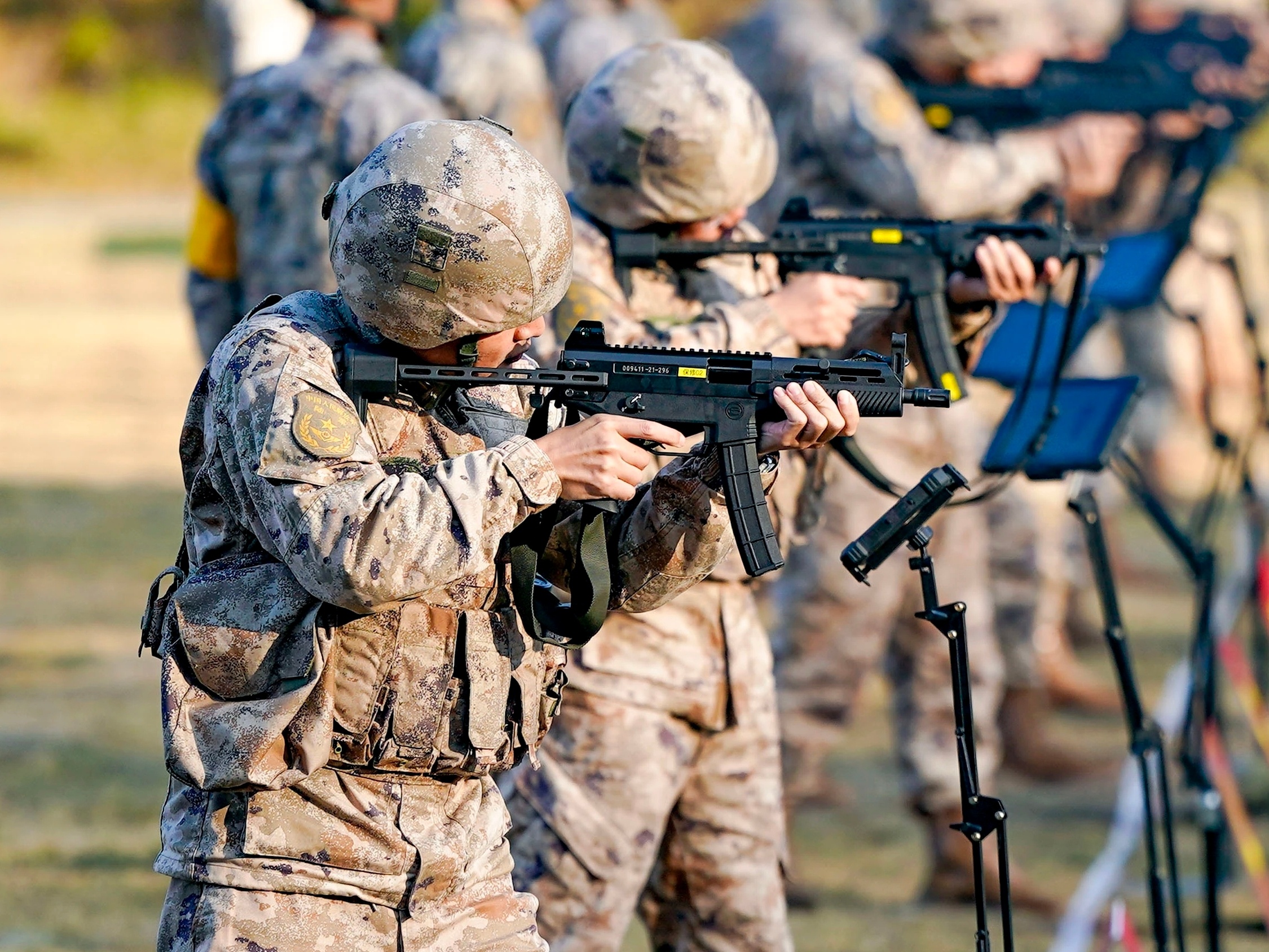 2021年海军陆战队的一张照片,图中从左到右分别为:QBZ192、QCQ171、QBZ192、QJB201和QBU191