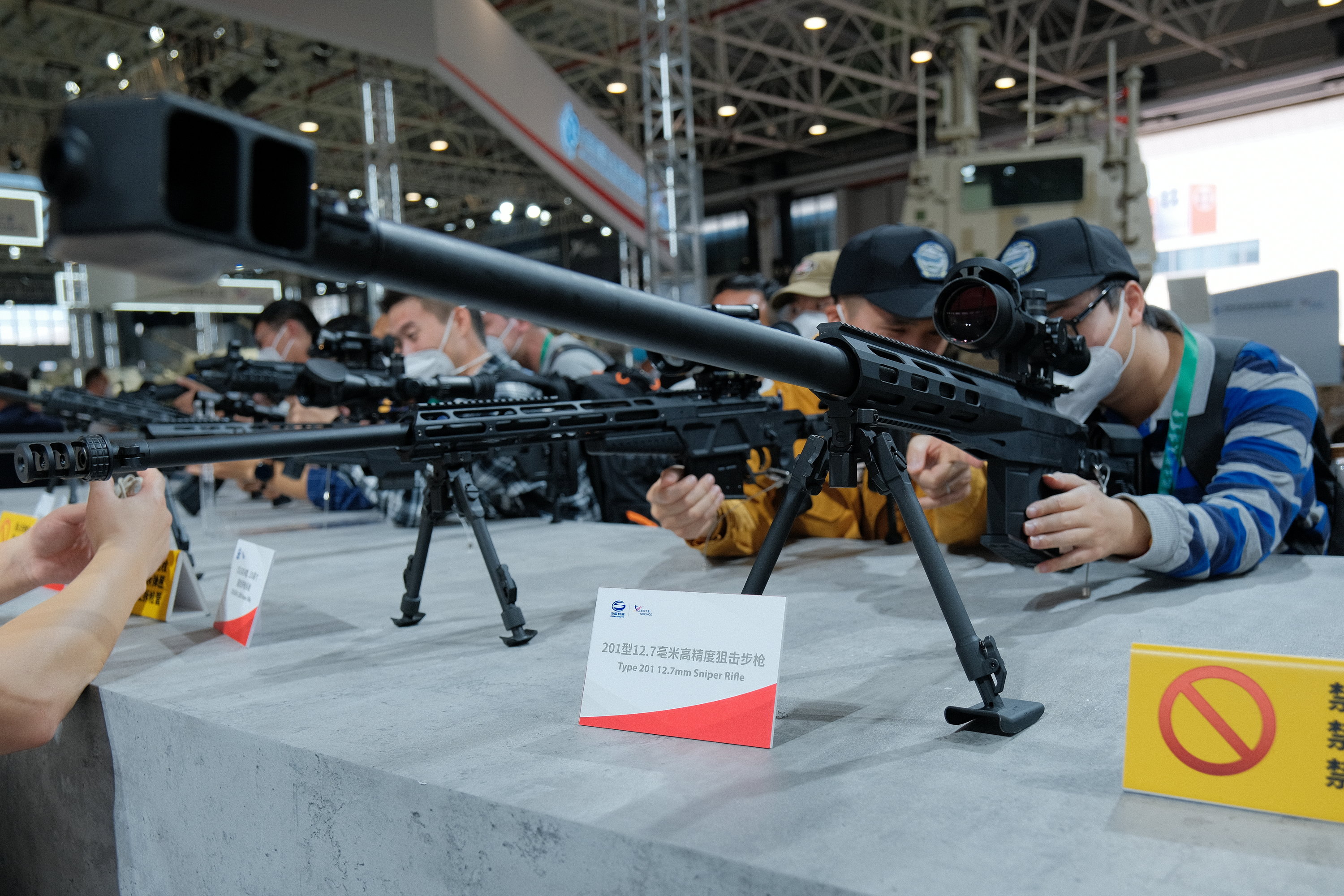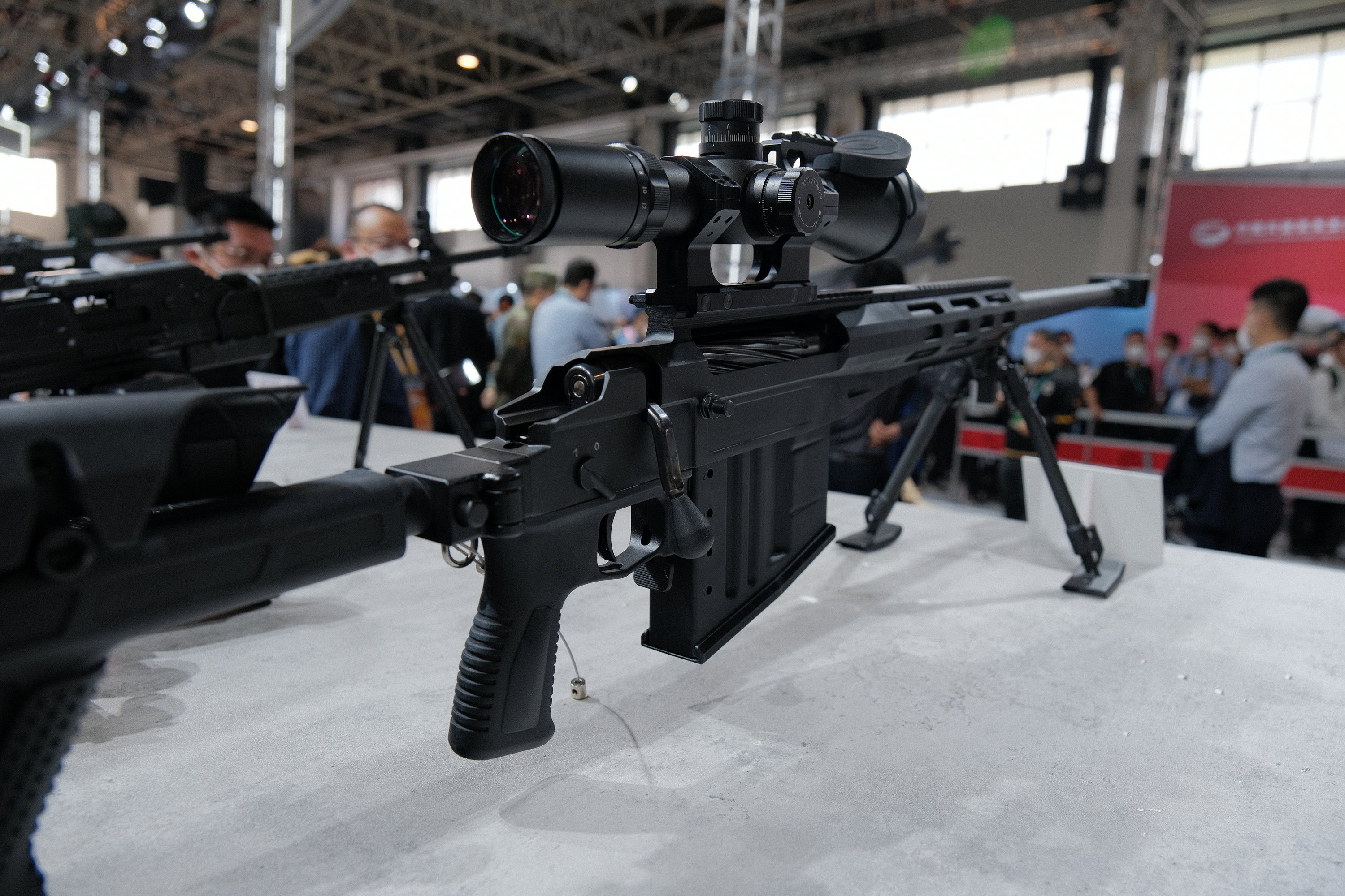 2022年党史馆展出的“部分国产新型单兵装备”展柜里的QBU201、202和203