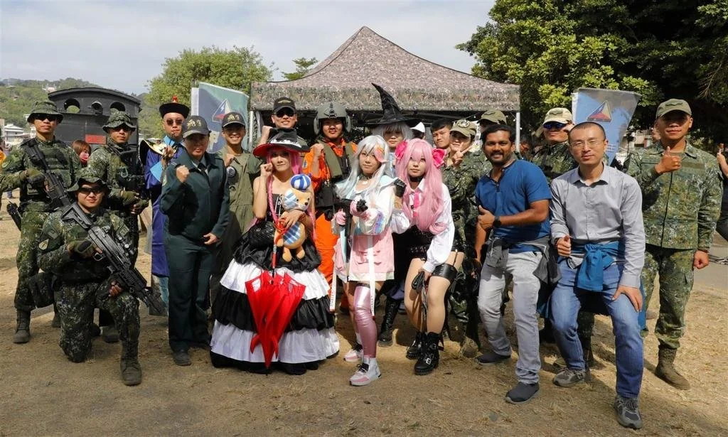 台湾陆军特种部队在2024年高雄的动漫祭中携带T75 SFAW机枪进行防务宣传