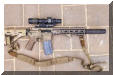 ![]() 民间轻武器玩家利用AEM5消声器将他的AR步枪改装成“戈登式卡宾”时,需要在刺刀卡笋上套上一个刺刀座固定套环。另外因为AEM5的安装深度比较短,所以还必须截短枪管。注意:AEM5配套的刺刀座套环与M4-Delta的并不相同,因为其伸出的轴套是锥面形状 |