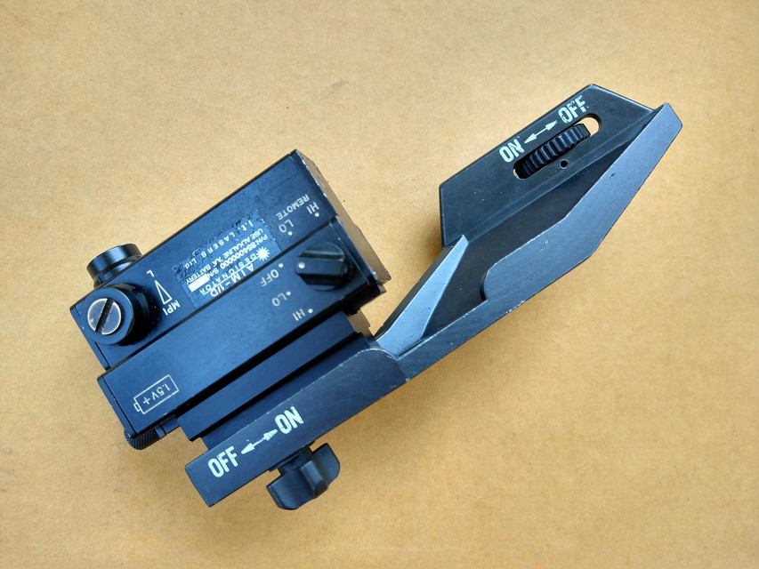AN/PEQ-2 Target Pointer/Illuminator/Aiming Light(ITPIAL)红外激光指示器射程可达600m,可以直接安装在RIS/RAS护木上,也可以在普通的M16A2护木上使用。主要有两个功能,一个是发射红外激光进行目标指示或辅助瞄准,另一个是红外补光,增强夜视仪的夜视距离。在使用模式上,有低功能和高功能可供选择。该激光指示器被美军大量采用,在其他国家的军队(如加拿大的C7/C8)也有使用。