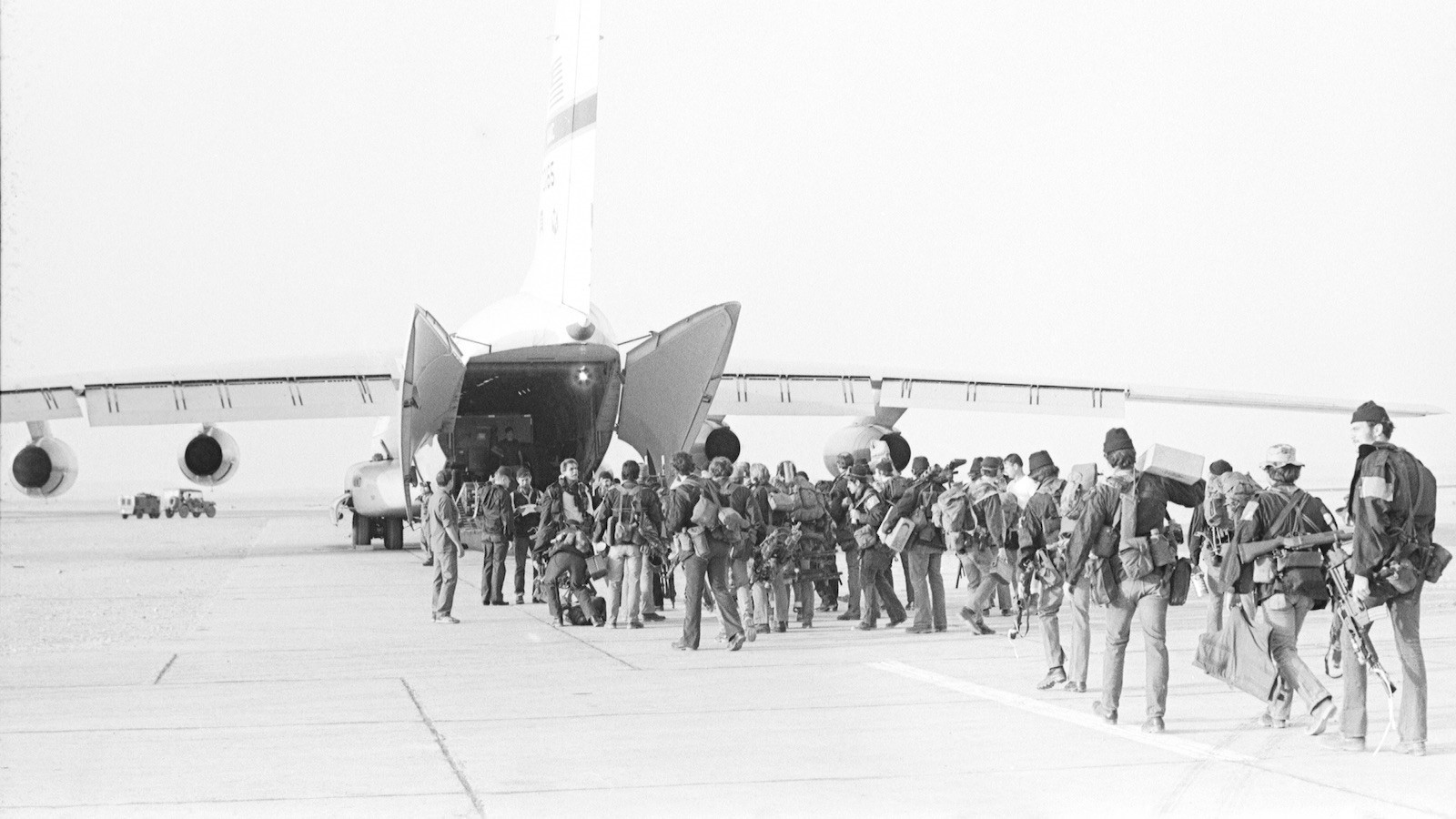 1980年鹰爪行动中正在登机的三角洲突击队员,随便中最后一人的XM177E2上就安装了AN/PQA-4