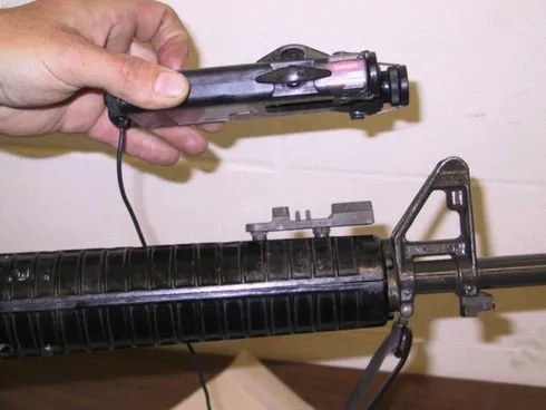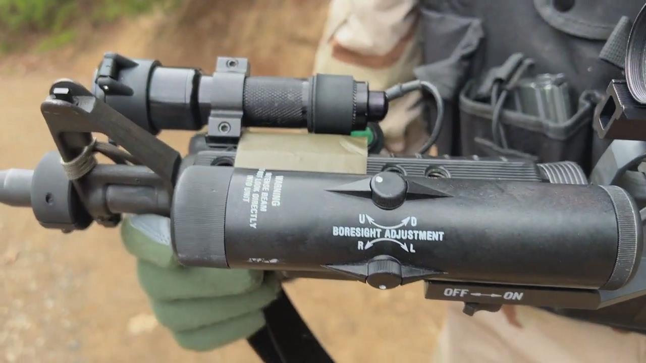 此照片中可以看到连接在AN/PAQ-4C底部的枪管箍座
