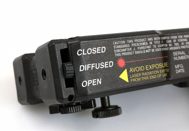 当使用者改变档位时,LCD显示屏会显示指示器所处的模式,并持续一段时间(可以通过编程模式调节模式的显示时长)。另外,显示器还会显示激光输出模式和电池的剩余电量。当使用者处于VIS模式时,显示屏周围较亮的琥珀色LED会对其打光, 从而辅助显示其内容。