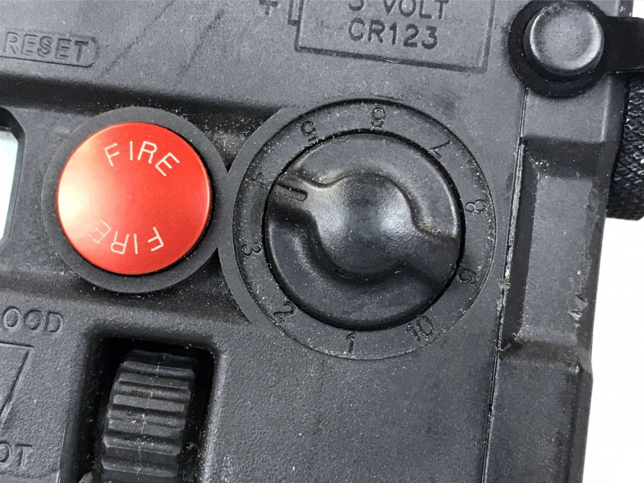 模式选择旋钮周围标注了10个档位,但仅有 1-6 号档位可用。7-10由于内部被限位导致锁定无法被选择,根据说明书,这些档位将在后续开发的过程中使用。不过,由于AN/PEQ-7 已经落选,WILCOX早已经放弃对其进行进一步开发。目前, 可用的6种模式分别为: