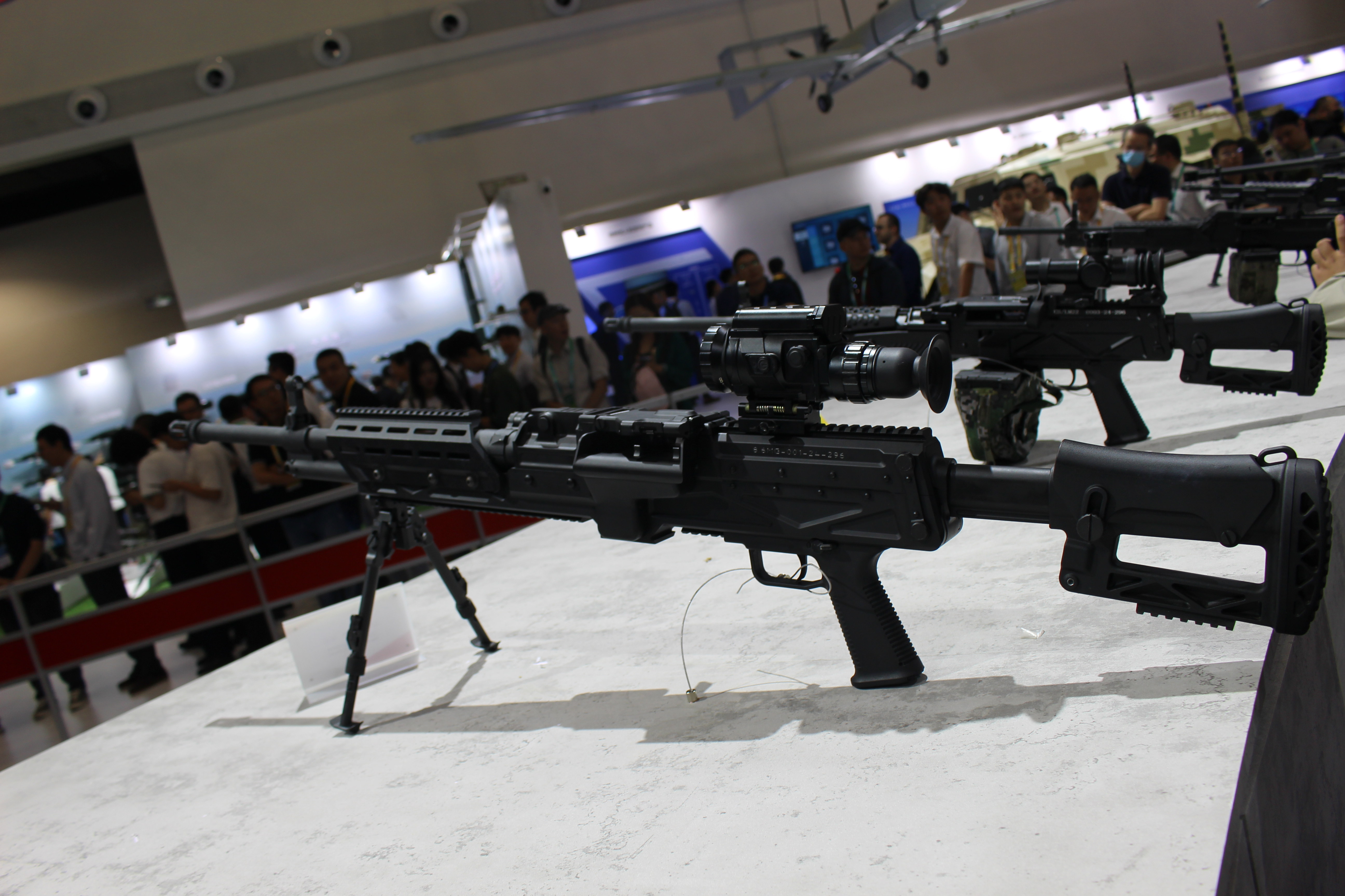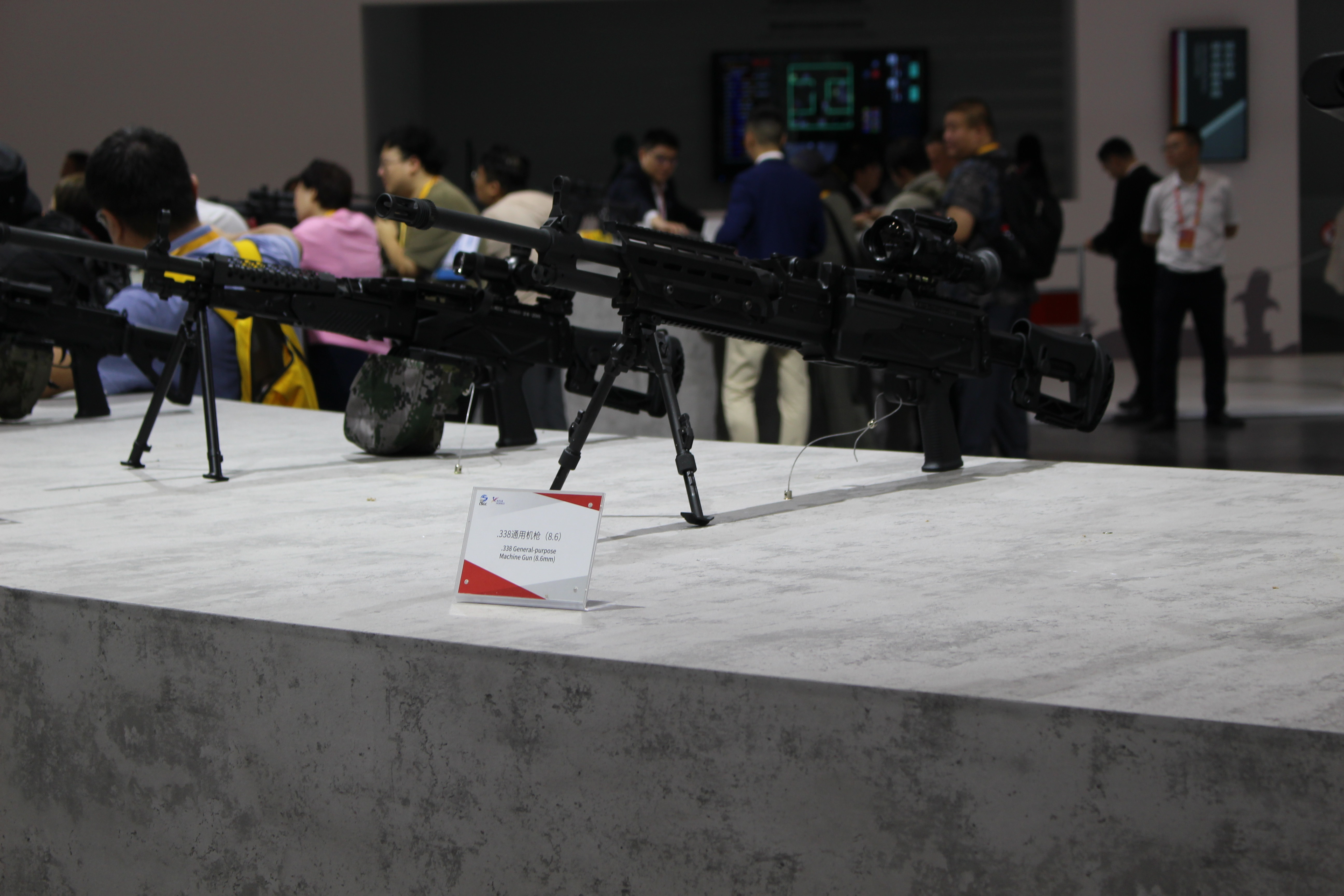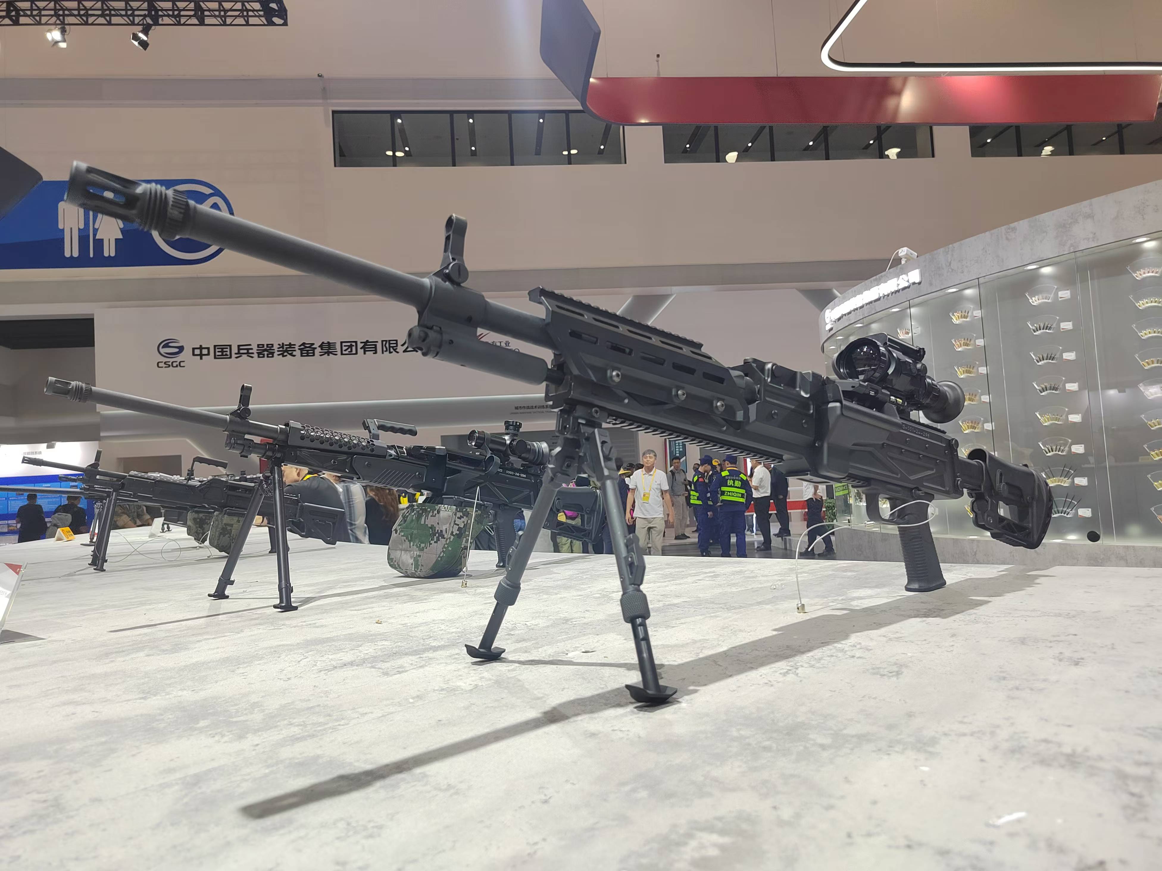8.6mm口径(即.338)通用机枪的传闻其实一直有,不过在2024年珠海航展上首次展出后,得以证实它的存在。目前该枪的相关信息不多,机匣上也没有暂时型号名称,但从展出样品来看,结构原理与QJY201通用机枪相近,所以应该也是与QJY89式重机枪相近的管退与导气混合的自动方式。无独有偶,美国的SIG MG338和RM338也同样采用了类似的混合动力。