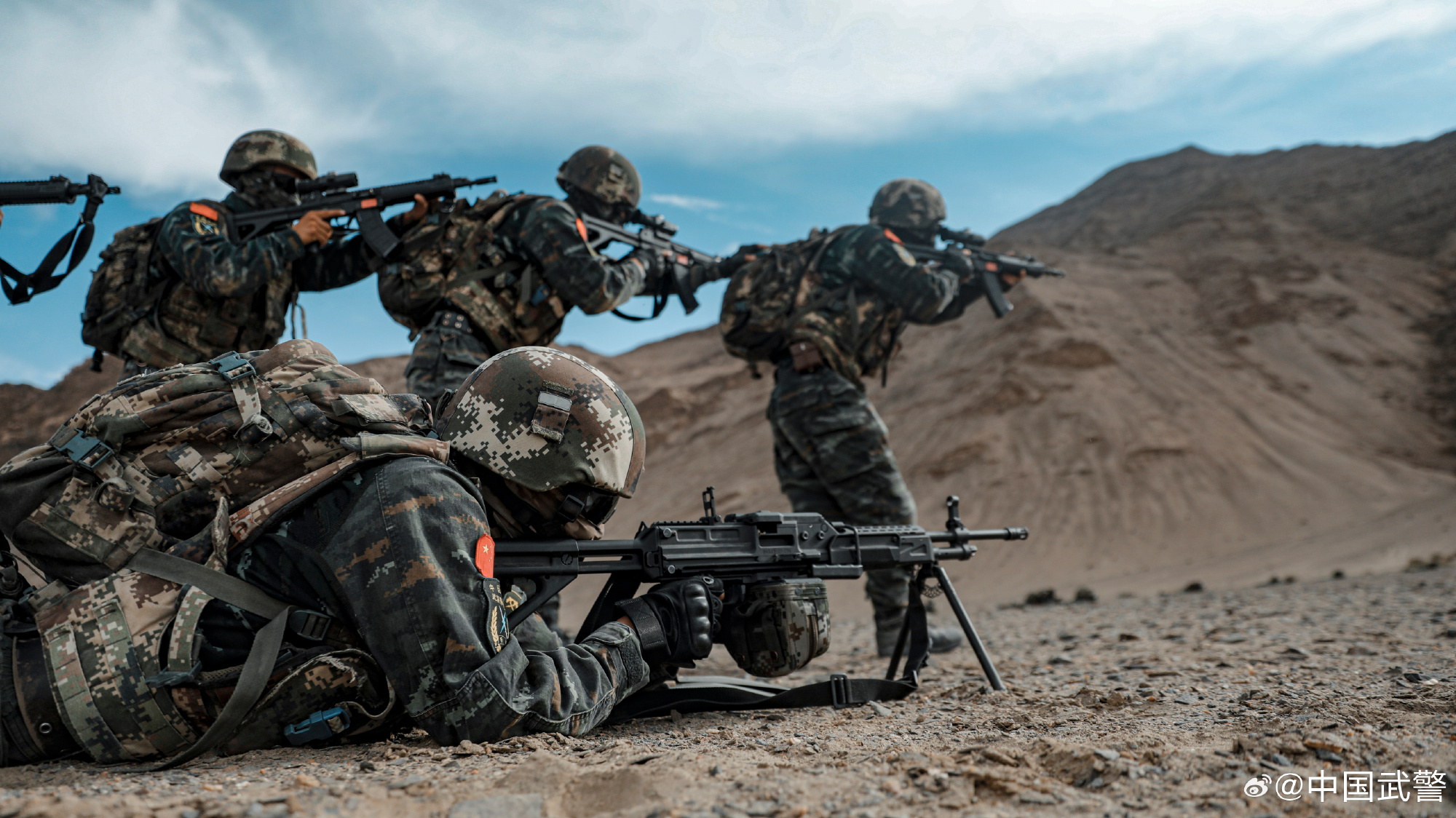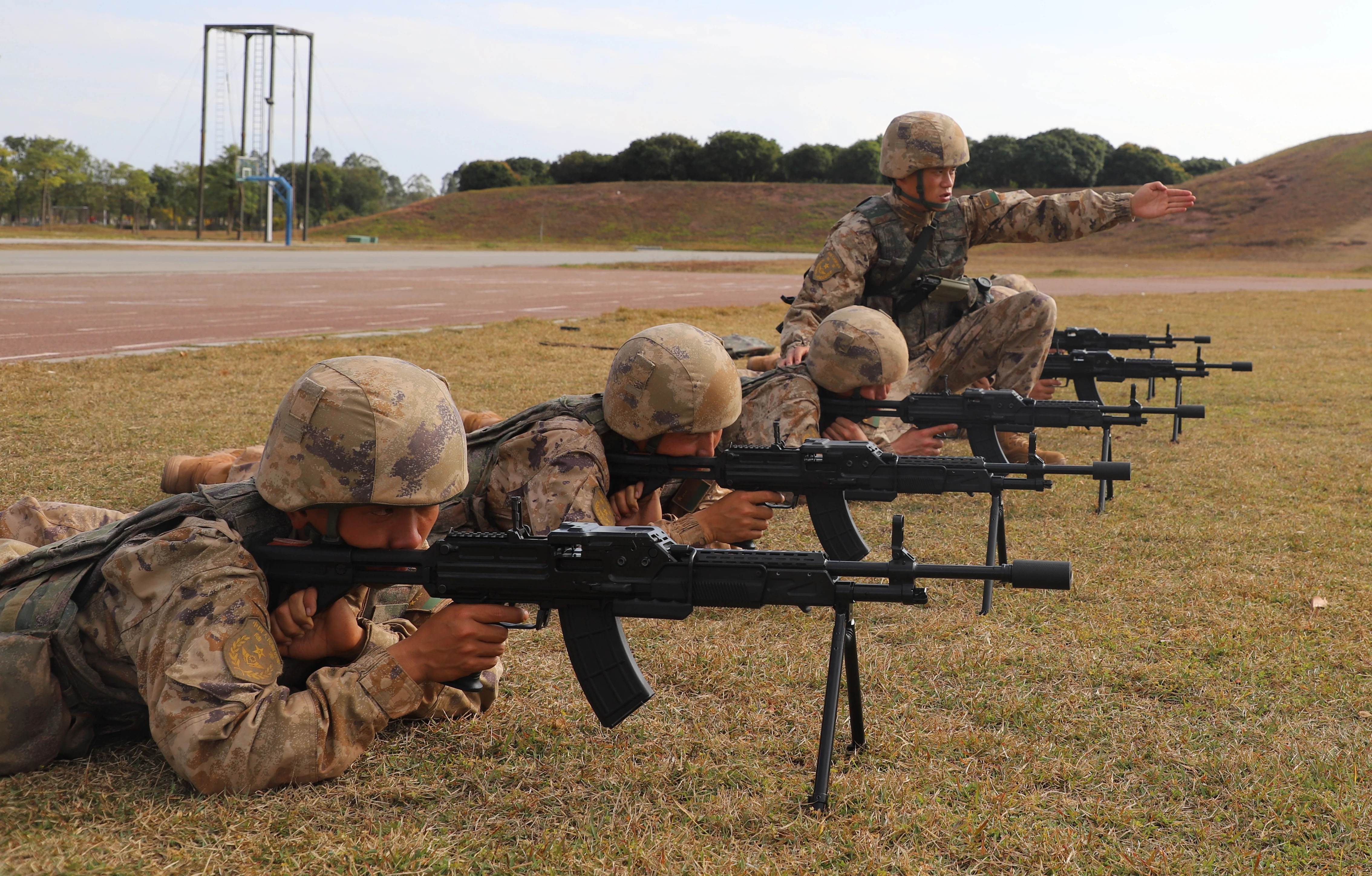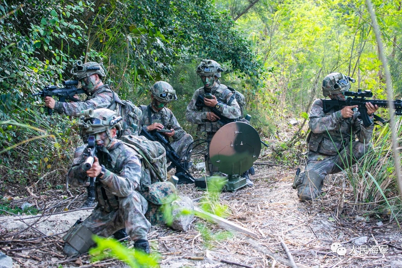 2021年海军陆战队的一张照片,图中从左到右分别为:QBZ192、QCQ171、QBZ192、QJB201和QBU191