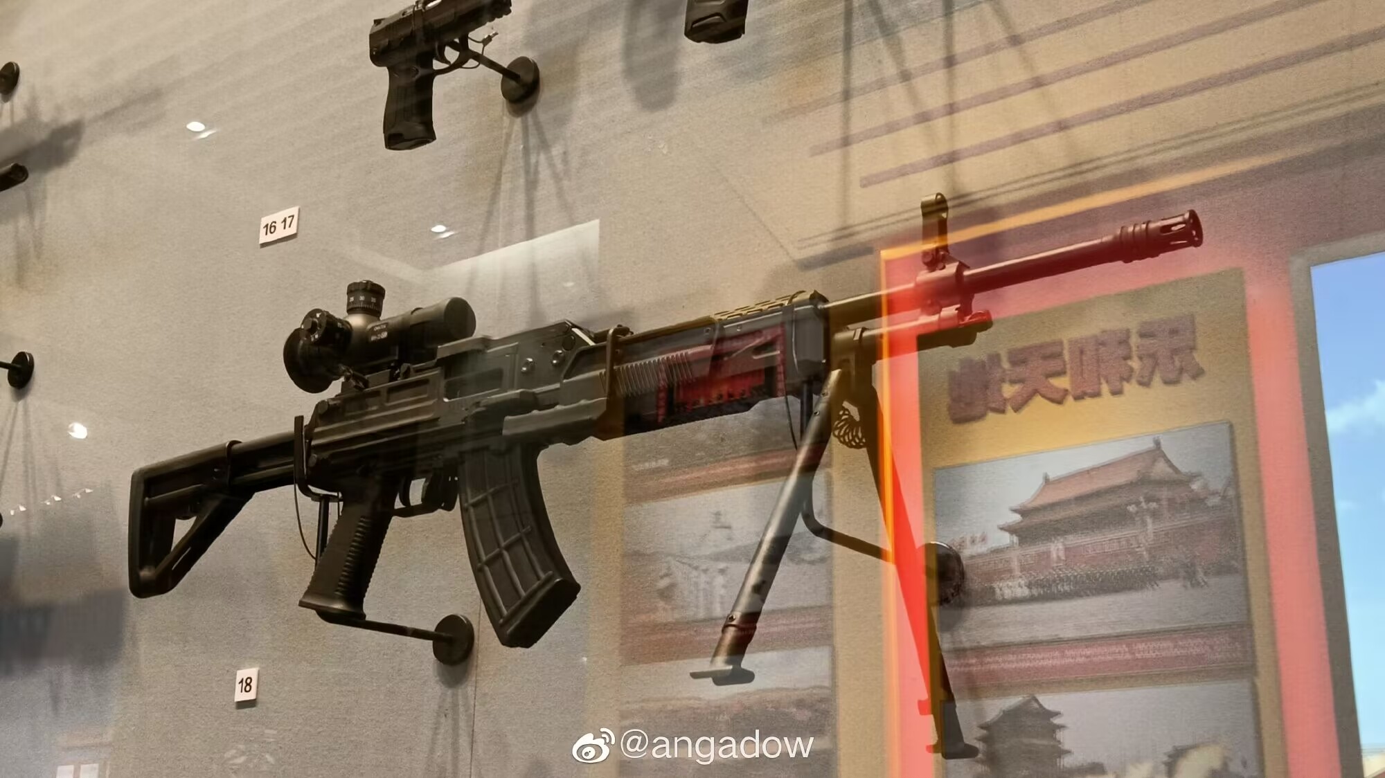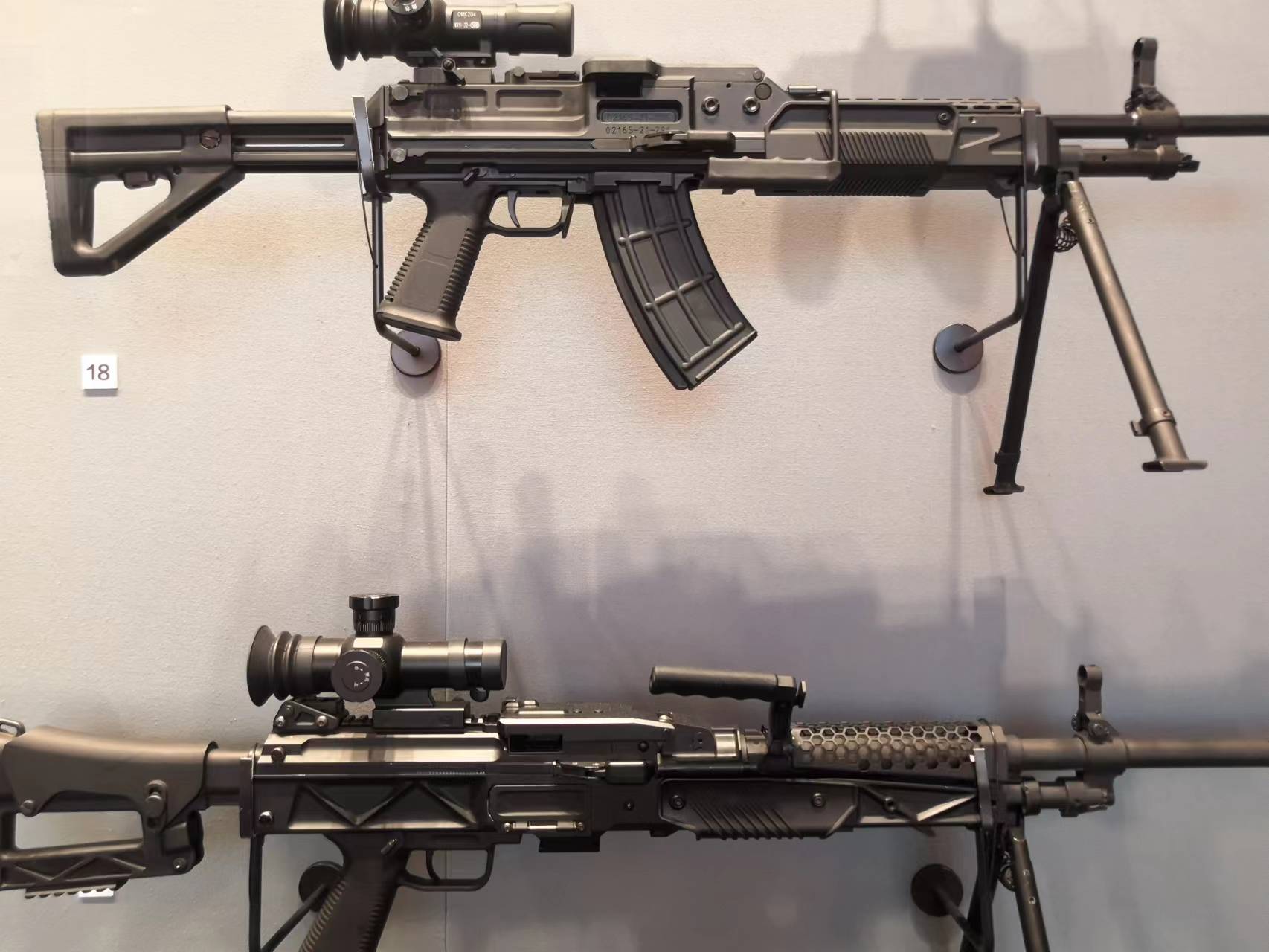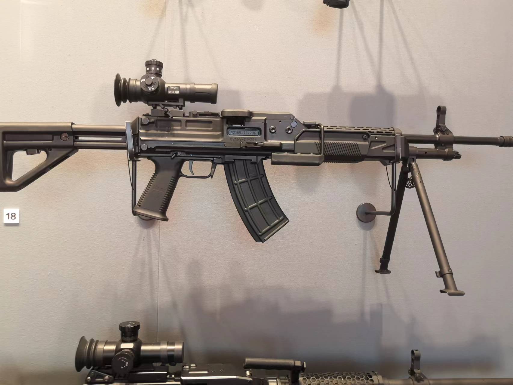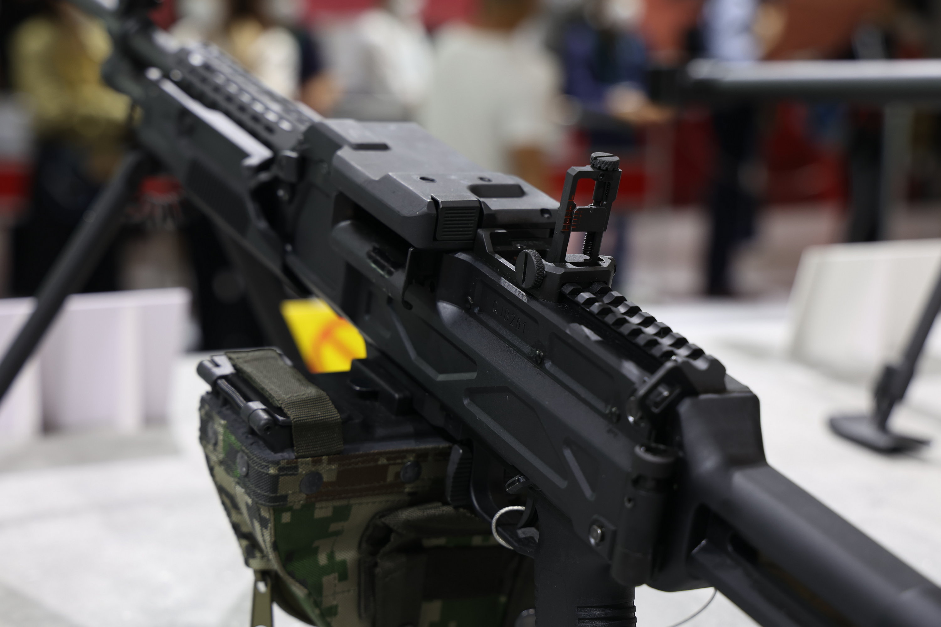 2022年党史馆展出的“部分国产新型单兵装备”展柜里的QJB201机枪