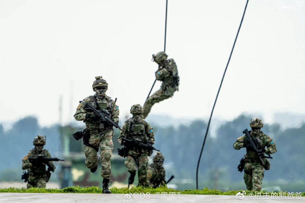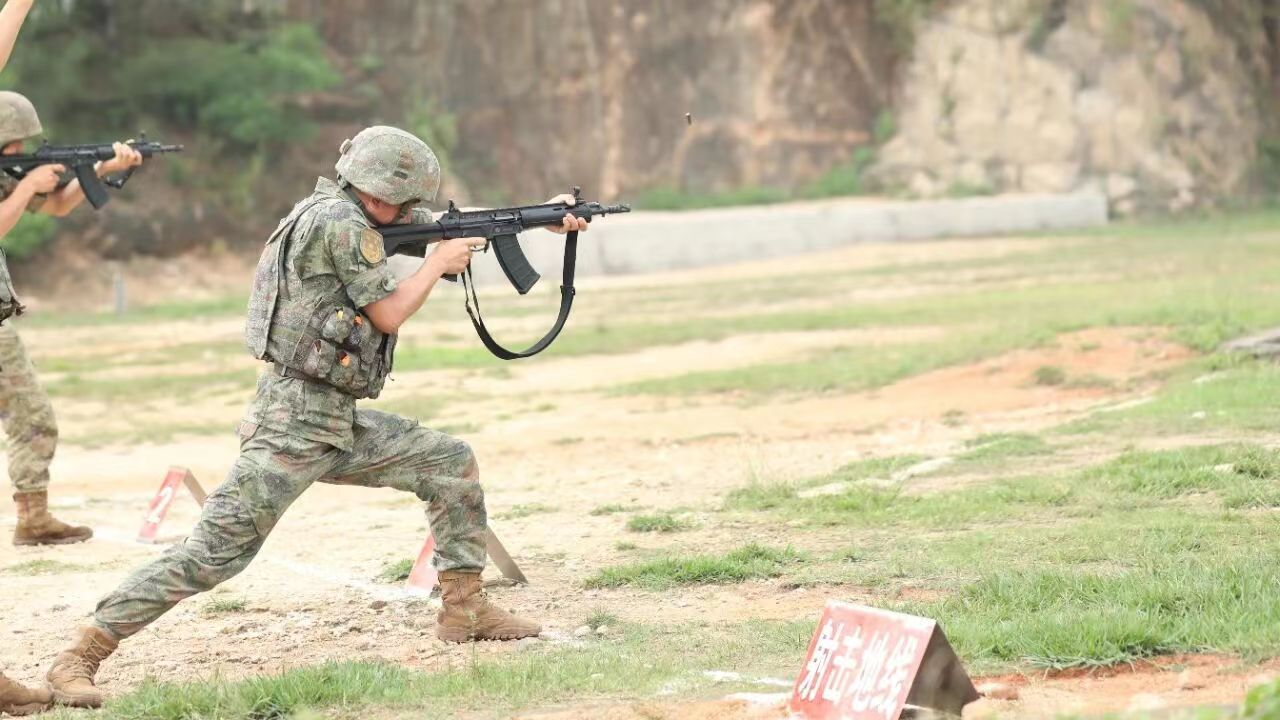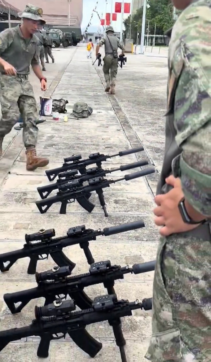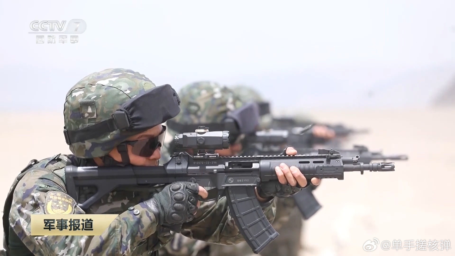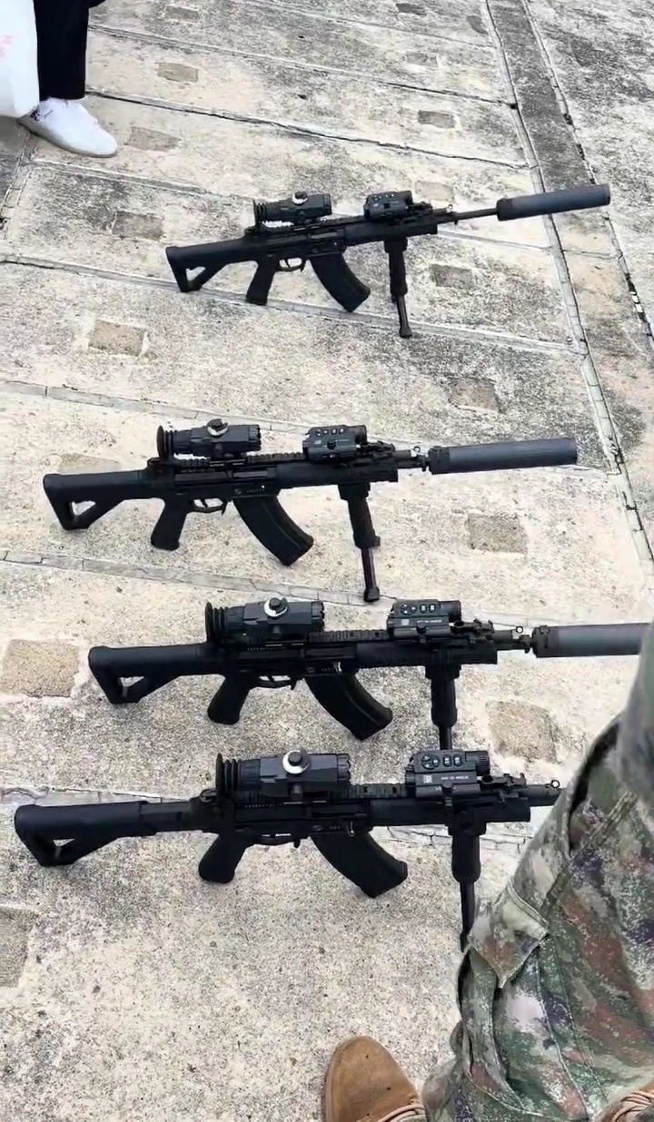 2021年海军陆战队的一张照片,图中从左到右分别为:QBZ192、QCQ171、QBZ192、QJB201和QBU191