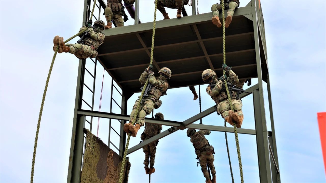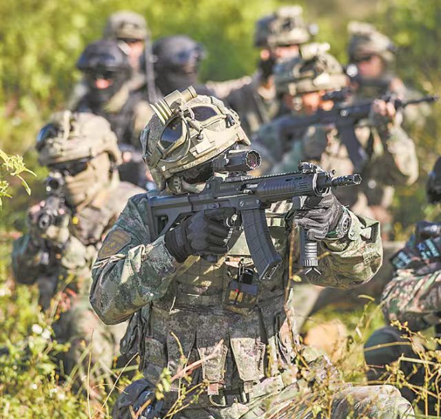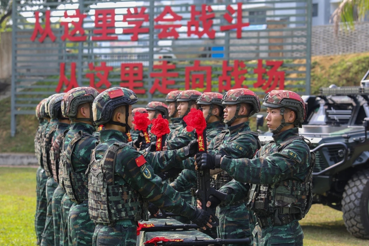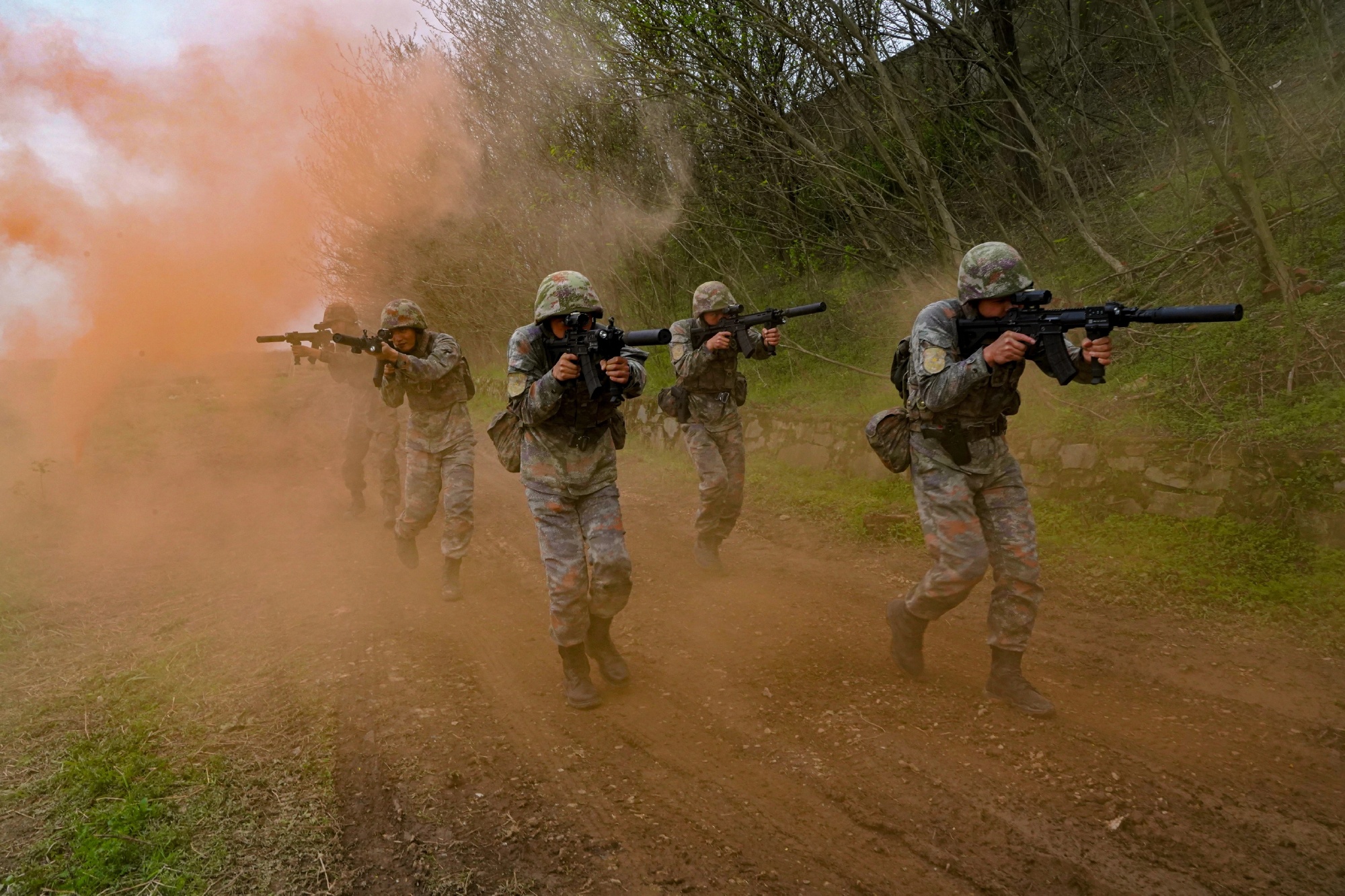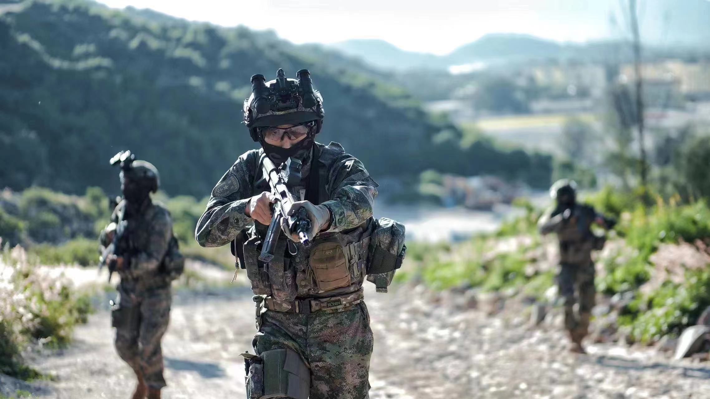 2021年海军陆战队的一张照片,图中从左到右分别为:QBZ192、QCQ171、QBZ192、QJB201和QBU191
