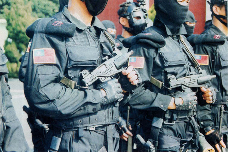 ![]() 装备迷你乌兹的台湾海军陆战队特勤队,但他们同时也装备了T77 |
