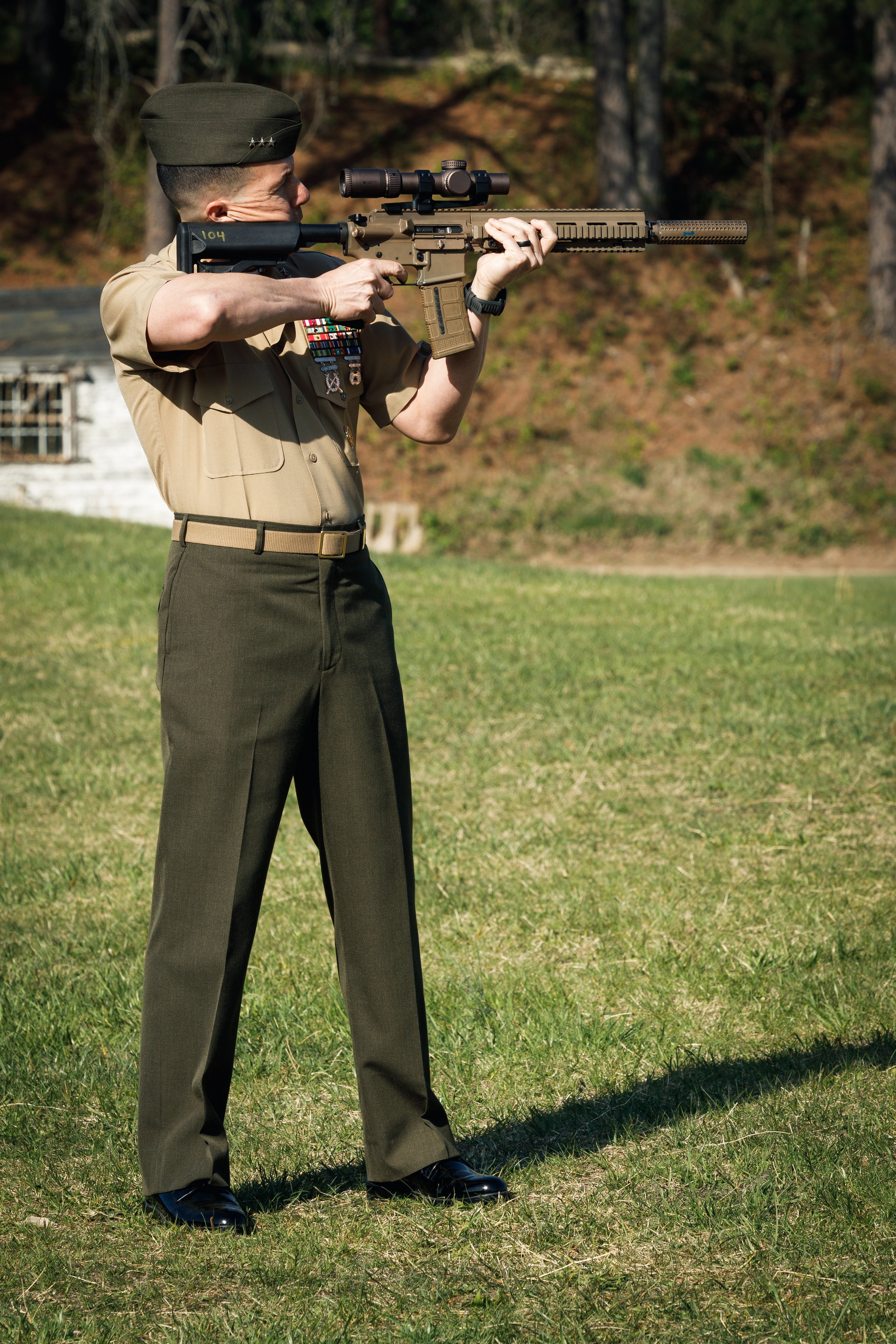 2023年正在使用M27 RWK进行CQB训练的第二海军陆战队远处军作战训练组教官