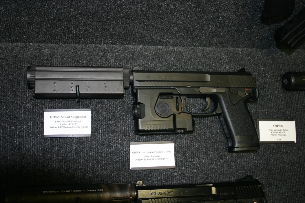 OHWS由三部分组成——.45口径手枪、激光瞄准模块LAM(Laser Aiming Modules)、消声器。整个计划被分为三个阶段,研制和测试是第1、2阶段,第3阶段是生产阶段。USSOCOM原定于1992年3月开始第1阶段的比较试验,1993年1月开始第2阶段的比较试验,选定型号后在1993年12月开始第3阶段即总量为9,000支手枪的批量生产。但由于海湾战争的爆发,整个计划被推迟。