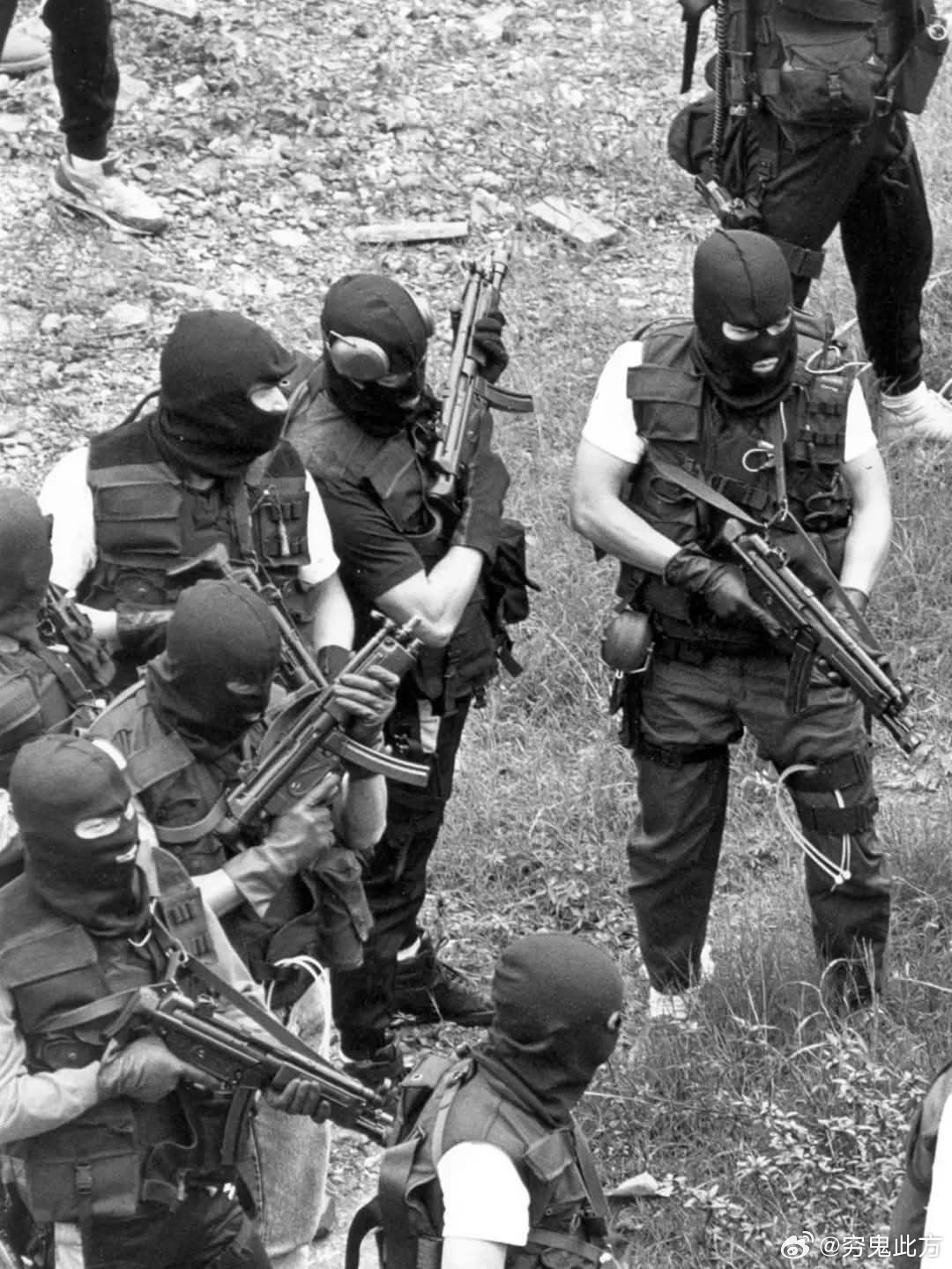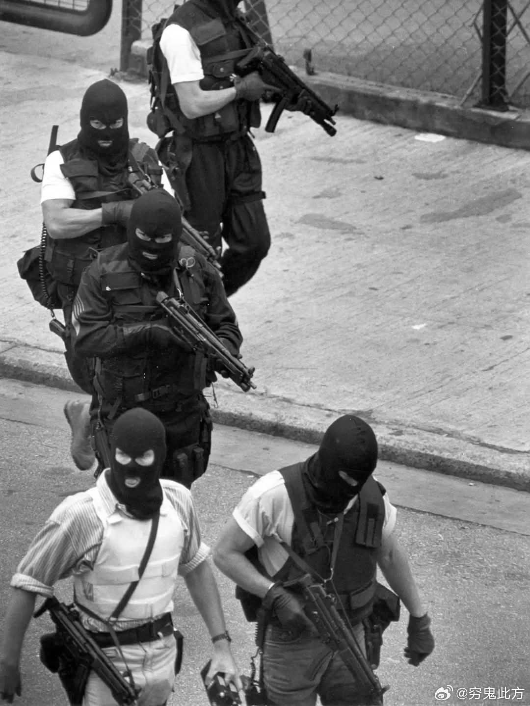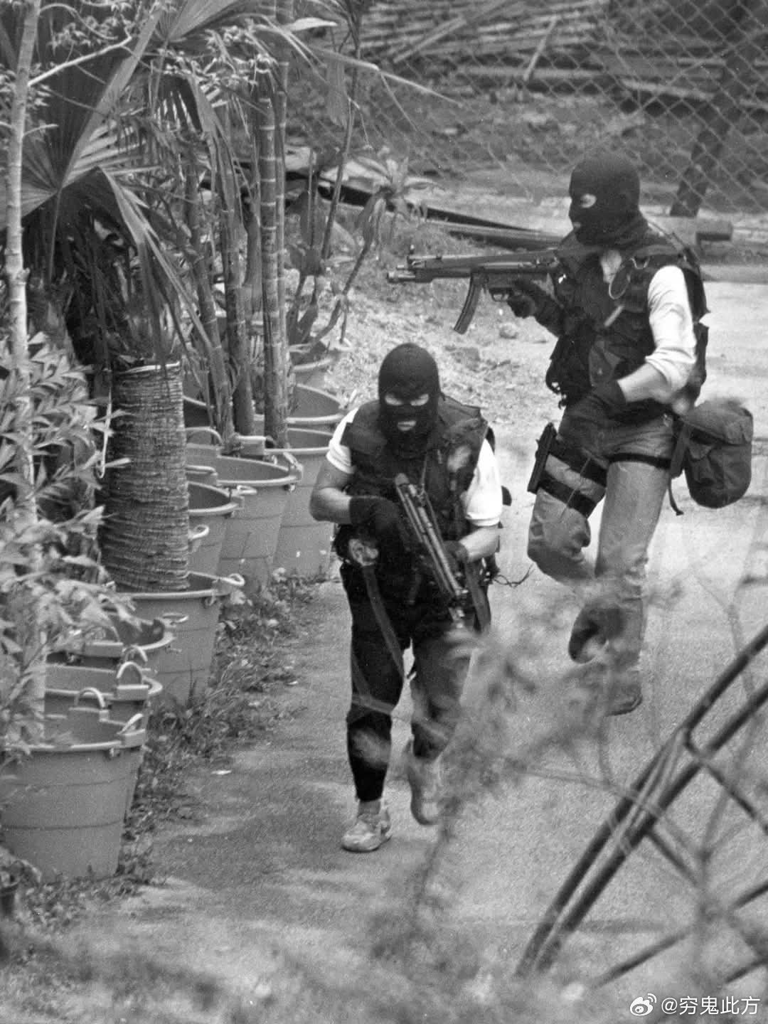1990年,使用MP5进行反恐训练的SASR,此时SUREFIRE还不流行,在枪上挂着的是大号手电筒
