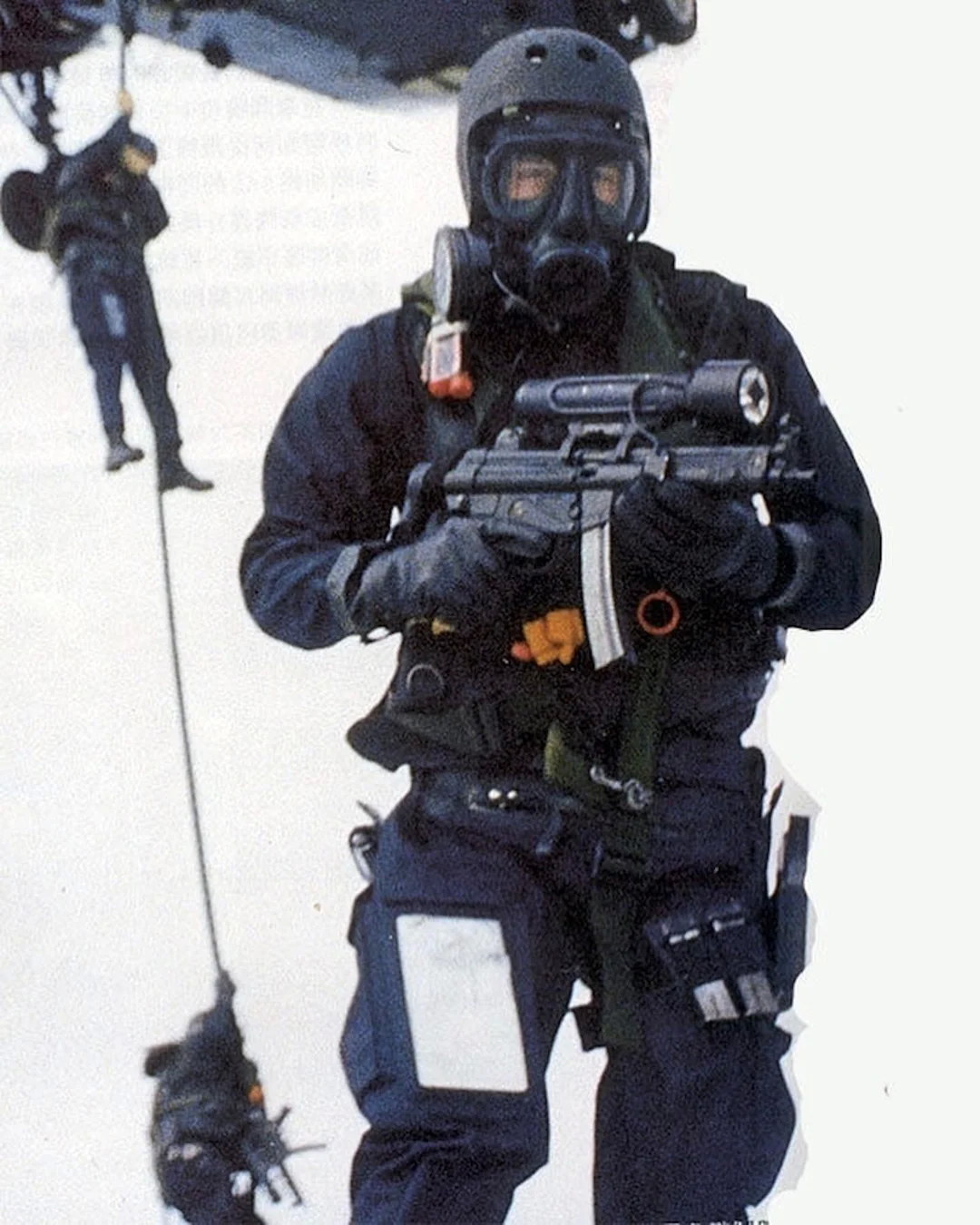 | 以下这一组五张的照片是台湾被称为霹雳小组的特警队。据说由于德国不批准HK公司向台湾出售MP5系列,因此台湾的MP5是从美国买来的二手货。更有传言指台湾在2005年购入一批“MP5”其实正式名称是SWA5,为美国一家小厂生产的仿制品,寿命、可靠性都比原厂低。但不知道是否属实。这组照片中的MP5都有3发点射,分别是MP5A5和MP5SD6。
