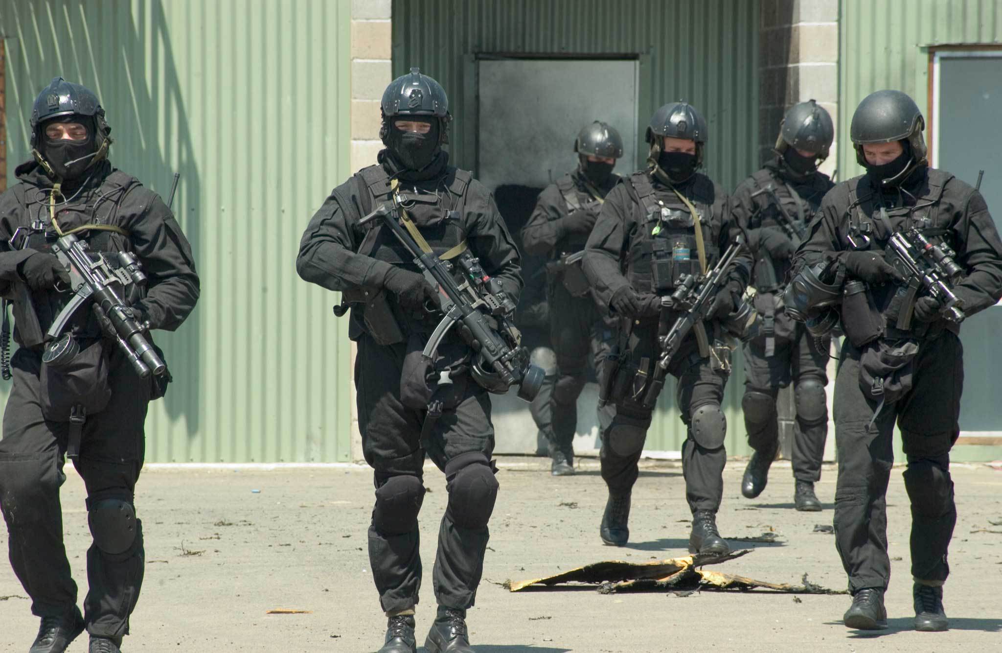 不知道是哪里的特警队,但写着“POLICE”至少应该是以英语为官方语的国家吧。