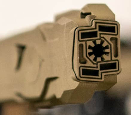 MFMD的生产工艺是增材制造(additive manufacturing,3D激光烧结/金属3D打印)结合后加工。核心抑制模块使用高温镍合金通过3D打印实现复杂内部流道(长达10–13英尺,约25至33厘米),但枪口固定装置和某些接口仍需机加工精修,以确保精度、耐用性和安装兼容性。