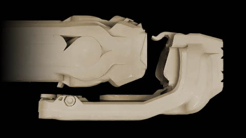MFMD内部结构,可以看出气体流道比起传统消声器要复杂得多,图中也可以看出MFMD不是快拆结构,安装前必须先拆卸枪上的消焰器或制退器