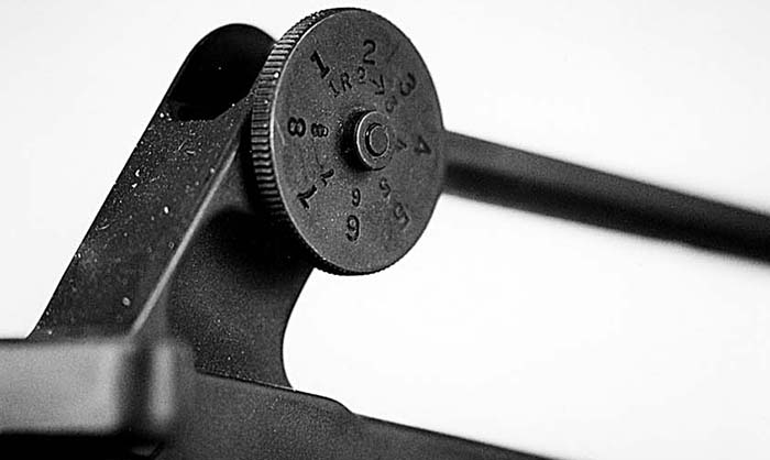 比起M16A1,M16A2的表演尺增加了一个调节照门高低的螺帽,可以调整归零值至800米。