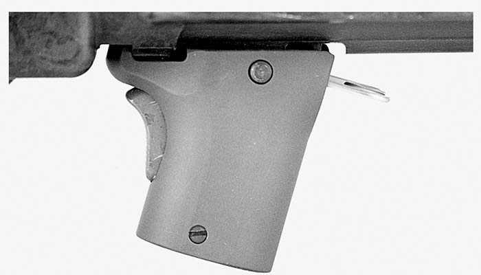 A是扳机,B是待发拉柄,装填后,要先拉B,才能扣A击发
