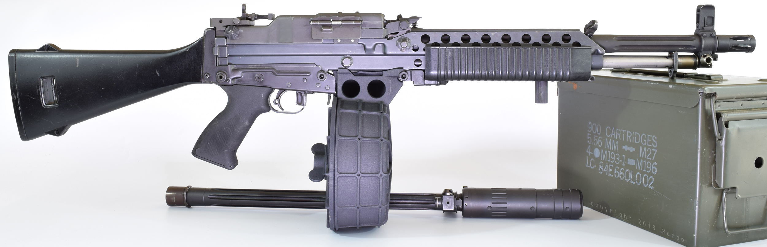 突击队员型,一挺为早期的左侧供弹型,另一挺为后期的右侧供弹型